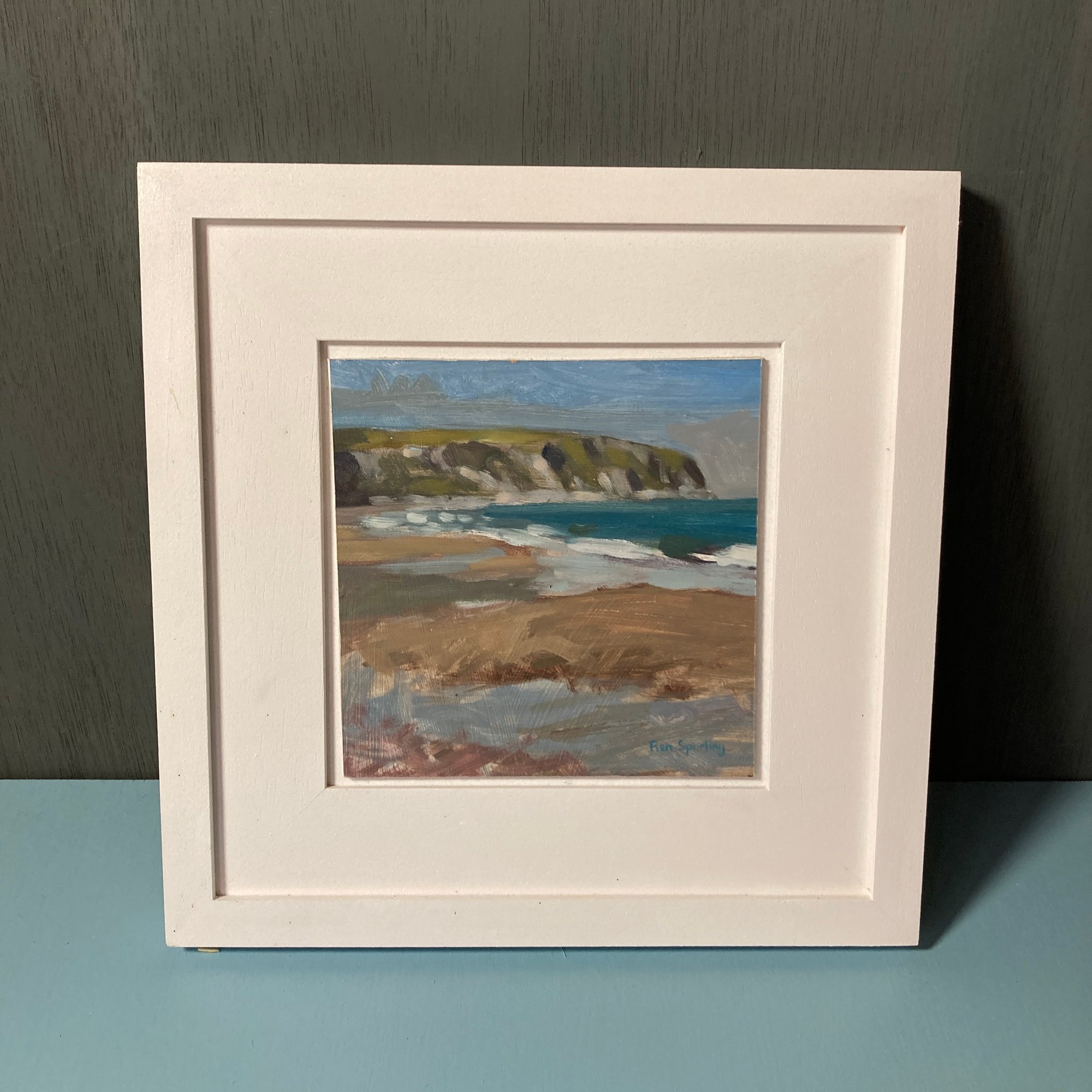 Oil on board, framed in a bespoke white double frame